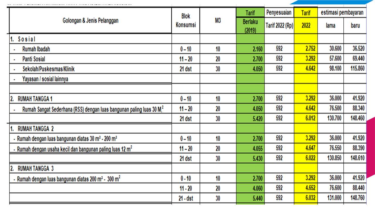 Struktur Tarif Skema Penyesuaian Tarif Baru Bagi Pelanggan PDAM Achmad Sutrisno 450 Views kaltara, pdam.nunukal