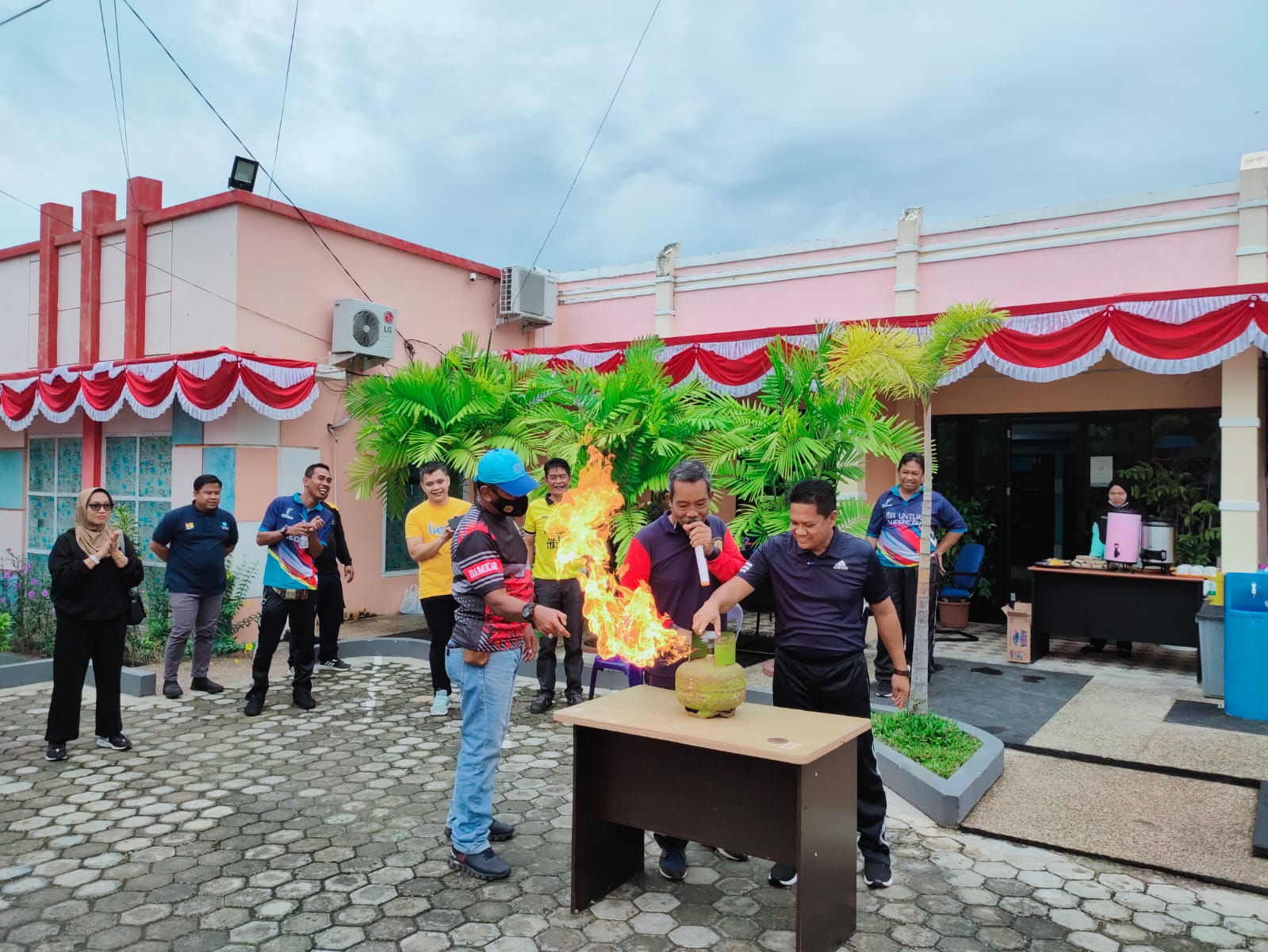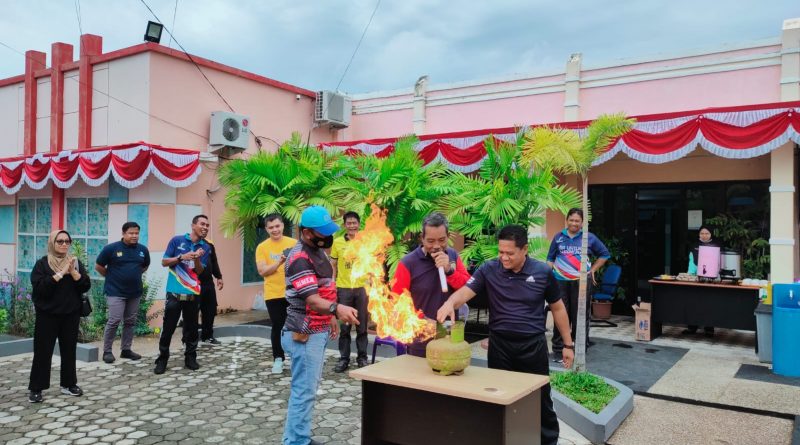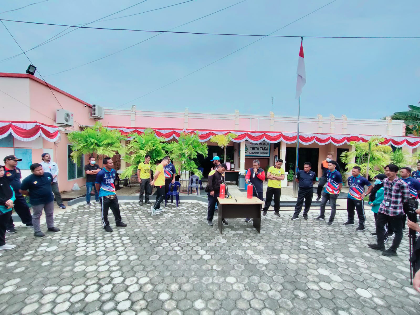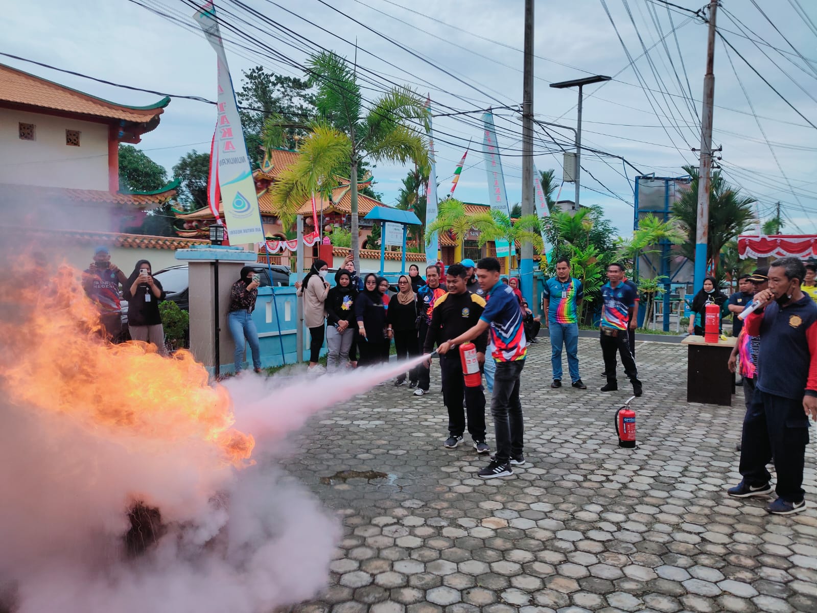 NUNUKAN — Perumda Air Minum Tirta Taka berkolaborasi dengan Dinas Pemadam Kebakaran Kab Nunukan menggelar simulasi menggunakan APAR dan mengatasi kebakaran ringan, Jumat, 26 Agustus.