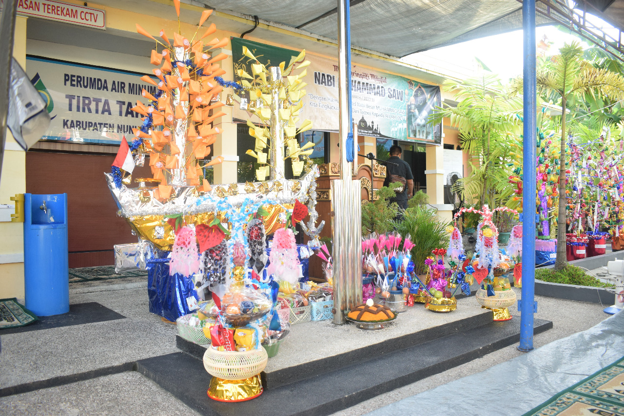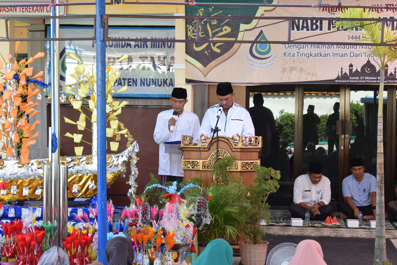 NUNUKAN, Perumda Air Minum Tirta Taka Kab Nunukan memperingati Maulid Nabi Muhammad SAW, Jumat, 21 Oktober. Tampam para karyawan, relasi hingga masyarakat hadir langsung memeriahkan peringatan ini di kantor Perumda Tirta Taka.