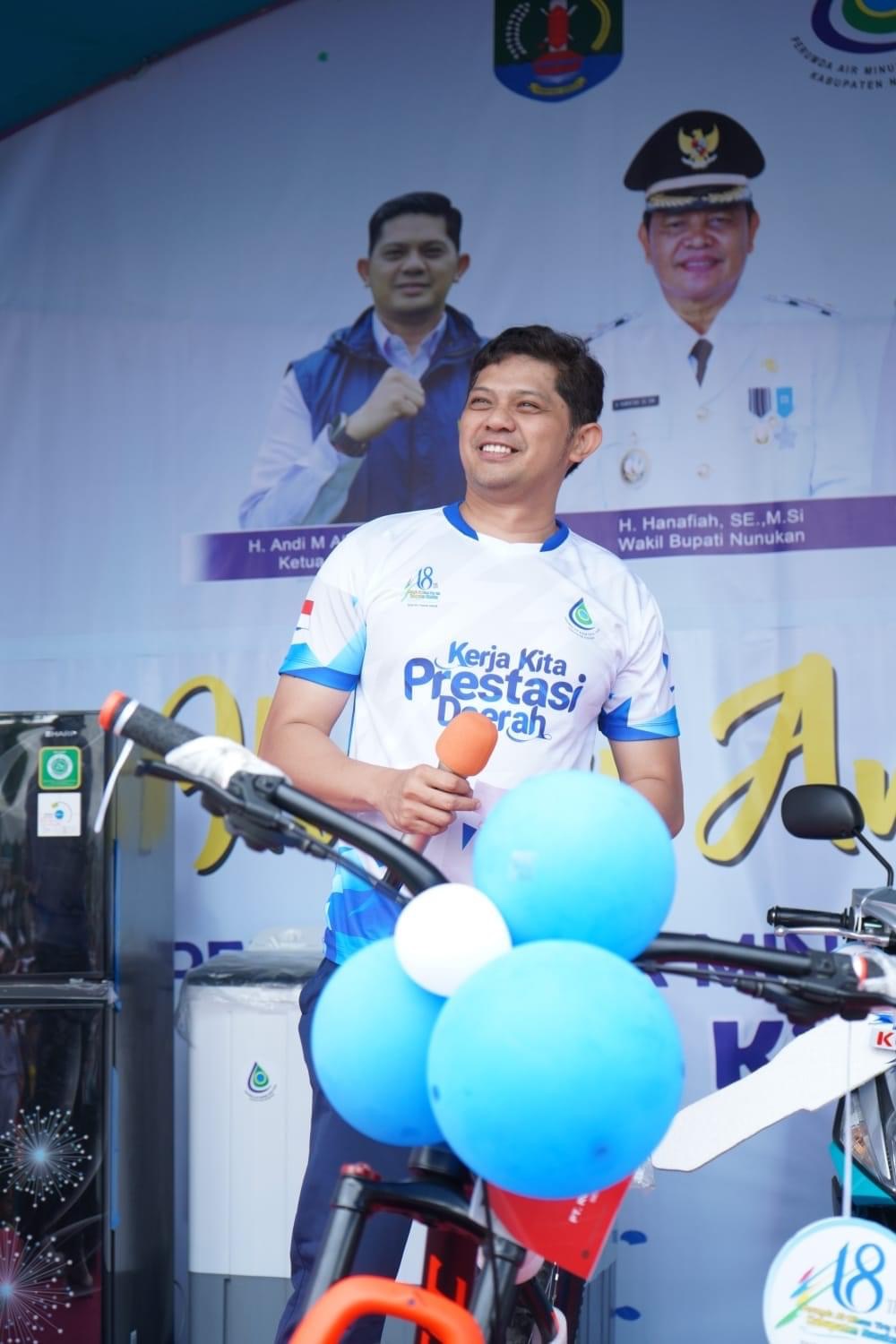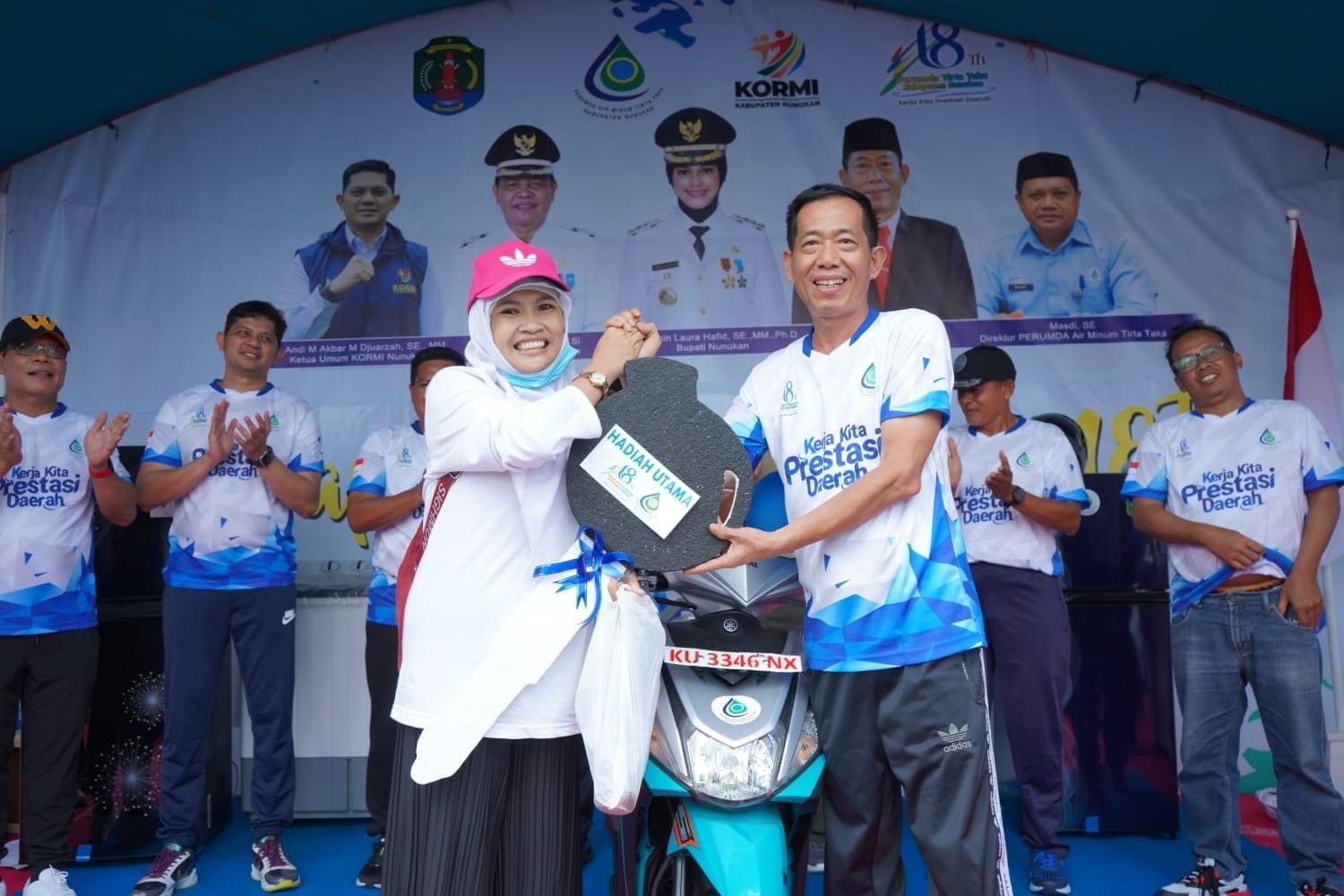 NUNUKAN, — Kemeriahan terlihat pada event Senam Bersama dan Jalan Sehat dalam rangka HUT ke-18 tahun Perumda Air Minum Tirta Taka di Alun-alun Kota Nunukan, Sabtu, 21 Januari. Tak hanya semakin sehat beragam hadiah menarik, dibawa pulang oleh masyarakat.