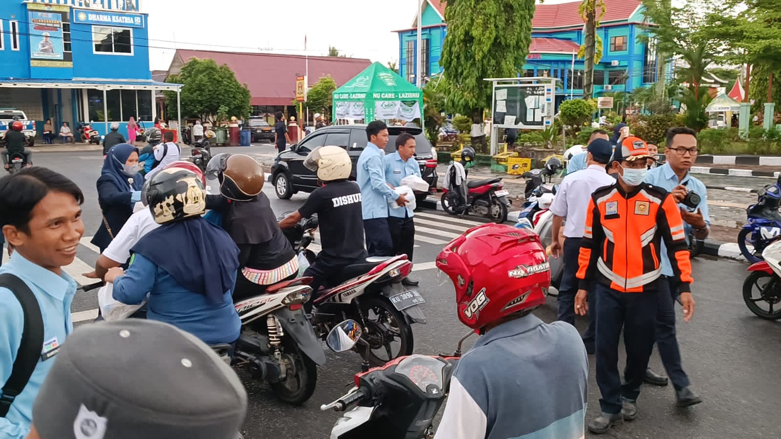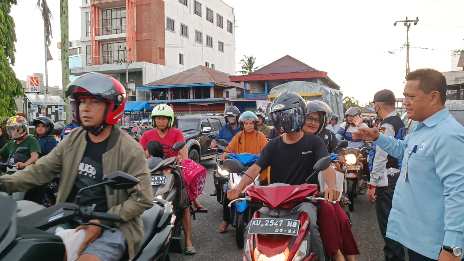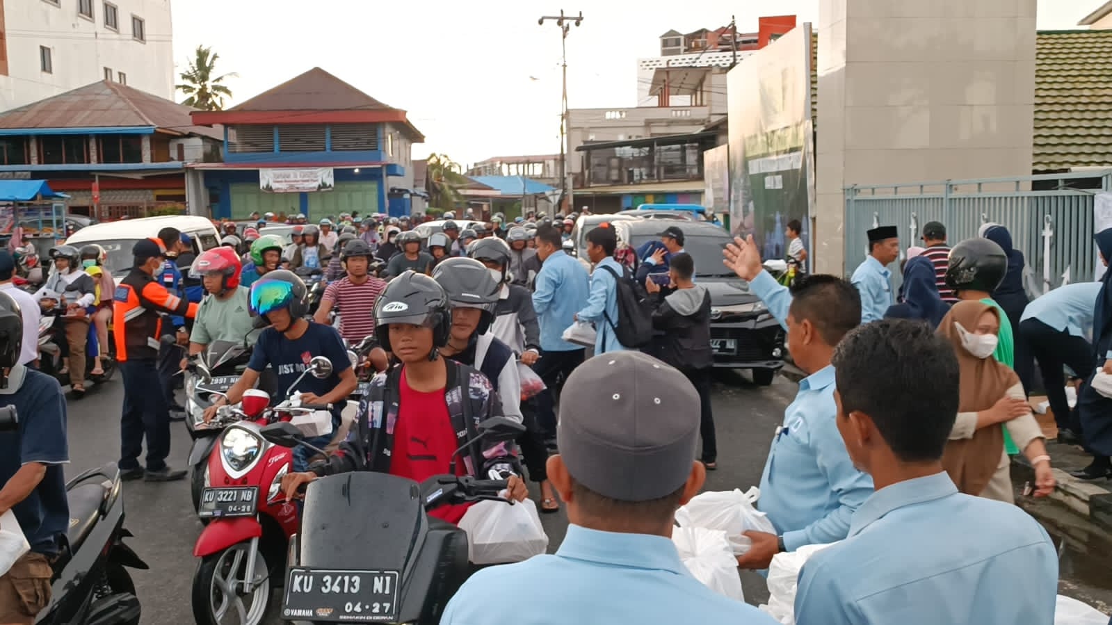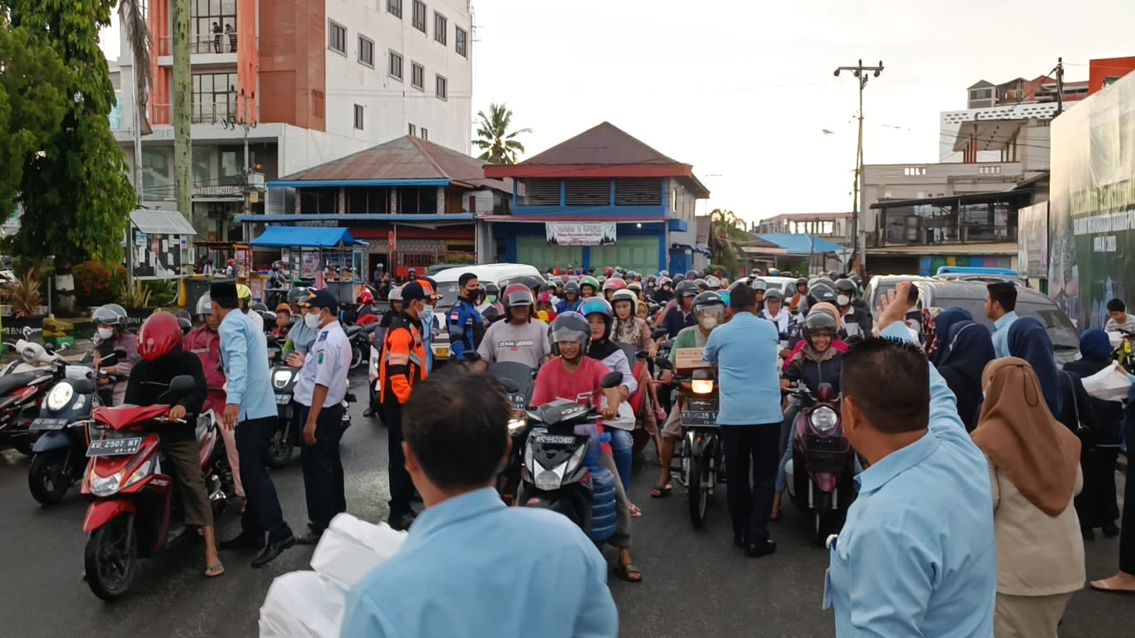 Direktur Perumda Air Minum Tirta Taka Nunukan, Masdi memimpin langsung bagu-bagi takjik kepada pengendara jalan dan masyarakat sekitar, di area Alun-alun kota Nunukan. Kegiatan ini pun diaambut dengan antusias, terlihat dengan padatnya antrean kendaraan yang tak ingin melewatkan momen ini.