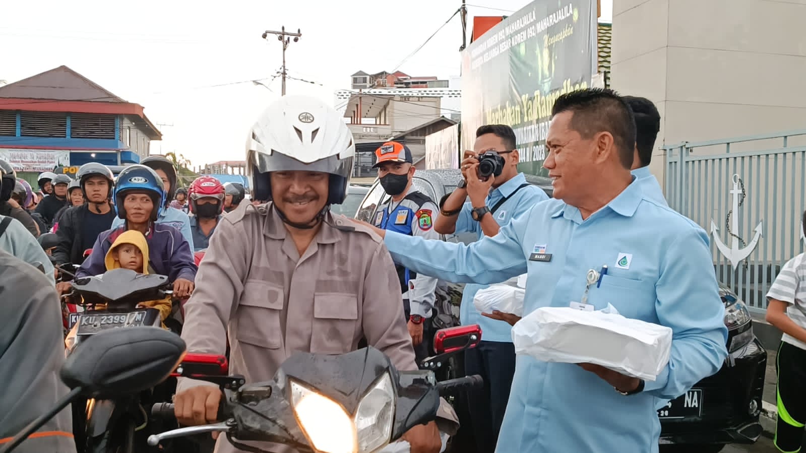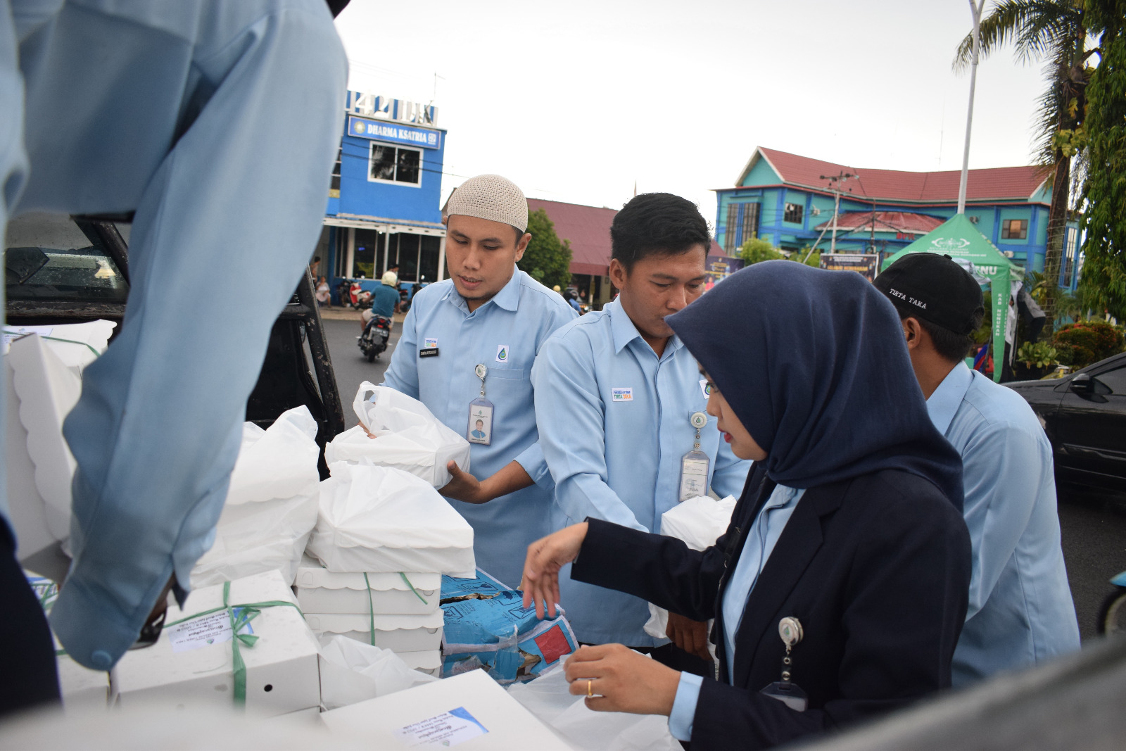 NUNUKAN — Momen berbagi di bulan Ramadan tak dilewatkan oleh Perumda Air Minum Tirta Taka Kab Nunukan. Salah satunya dengan berbagi takjil kepada masyarakat, Senin, 3 April.