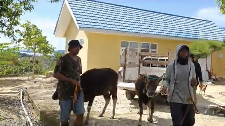Kemudian dua ekor sapi dari Perumda Air Minum Tirta Taka, yang nantinya dibagikan ke warga yang membutuhkan. Kemudian ada tambahan satu ekor sapi dari ibu-ibu Dharma Wanit Perumda Air Minum Tirta Taka.