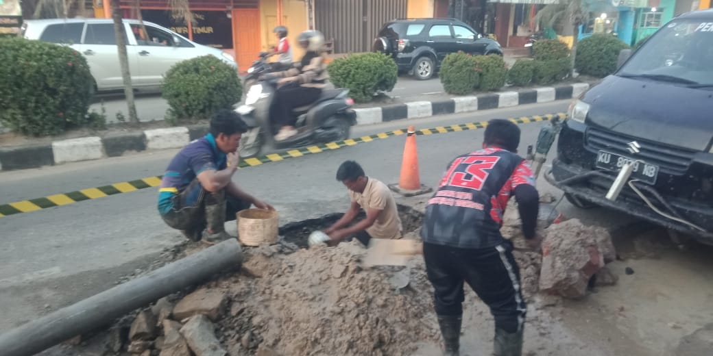 NUNUKAN, — Kebocoran pipa ukuran 6 inci sempat terjadi di sekitaran wilayah Jalan Bhayangkara, Jumat, 15 November. Akan tetapi, perbaikan telah dilakukan dan pelayanan pun segera normal.